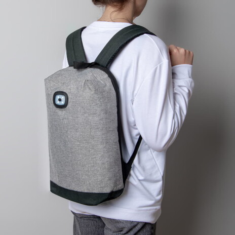 Универсальный рюкзак со световым индикатором выполнен из плотного 600 D полиэстера. У индикатора 3 режима освещения: мигающий, светит ровным белым свет и светит красным светом.