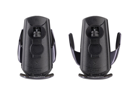 - поднесите смартфон к зажимам устройства на расстояние 10-15 см., сработает инфракрасный датчик и зажимы раздвинутся в стороны;