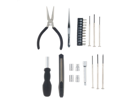 НАБОР ИНСТРУМЕНТОВ STINGER, 25 ПРЕДМЕТОВ Набор инструментов на 25 предметов STINGER W0402 поможет справиться с широким спектром хозяйственно-бытовых задач. Все инструменты изготовлены из высококачественной закаленной углеродистой стали с хромированным покрытием, рукоятки - из прочного углепластика (карбона). Набор включает в себя все основные инструменты, которые просто незаменимы при проведении мелкого ремонта, починки бытовой техники или сборки мебели. В КОМПЛЕКТЕ: 1. Рукоятка для бит - 1 шт. 2. Бита - 9 шт. 3. Адаптер для шестигранных головок - 1 шт. 4. Удлинитель для шестигранных головок - 1 шт. 5. Головка шестигранная (6/7/8/9) – 4 шт. 6. Нож канцелярский – 1 шт. 7. Отвёртка прецизионная шлицевая – 4 шт. 8. Отвёртка прецизионная крестовая – 2 шт. 8. Плоскогубцы – 1 шт. 9. Пинцет – 1 шт. ХАРАКТЕРИСТИКИ: Материал: углеродистая сталь, углепластик (карбон), кейс- пластик Размер: 164 х 107 х 49 мм