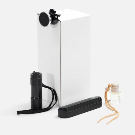 - Материал: держатель - АБС-пластик; визитка - пластик; фонарик - алюминий; ароматизатор - стекло, дерево; коробка - микрогофрокартон