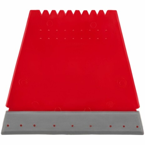 Все 4 стороны скребка рабочие: резиновый водосгон с широкой стороны, зубья-ледорубы с узкой и две скошенные грани по бокам.