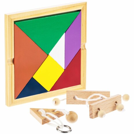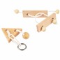 Миниатюрная головоломка Combi из натуральных материалов. Задача головоломки — разъединить ее элементы, не развязывая веревку.