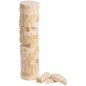 Игра состоит из 54 деревянных брусочков (18 этажей). Поставляется в черной картонной коробке с контурным изображением башни. Инструкция с правилами в комплекте.