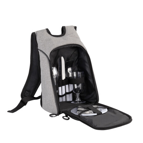 В набор входит: *Сумка 23 х 33 х 12 см *Вилки, ложки и ножи из нержавеющей стали по 2 шт. *Тарелки d 15 х 0,9 см - 2 шт. *Бокалы из поликарбоната h 13,2 х d 6,4 см, объем 200 мл - 2 шт. *Салфетки из хлопка 30 х 30 см - 2 шт.