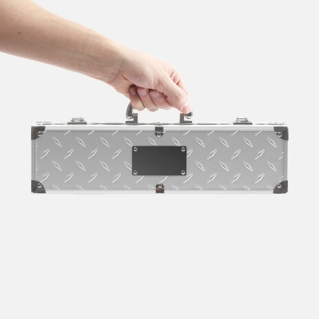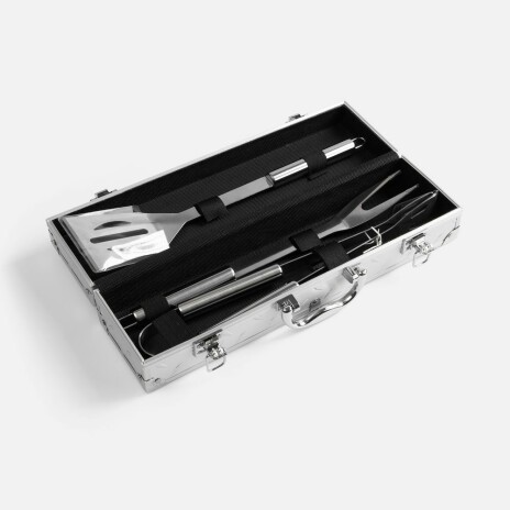 - Размеры: вилка: 35,5х3,5х2 см; лопатка: 35,5х7,5х2 см; щипцы: 35х4,2х6 см; кейс: 37х10х8 см