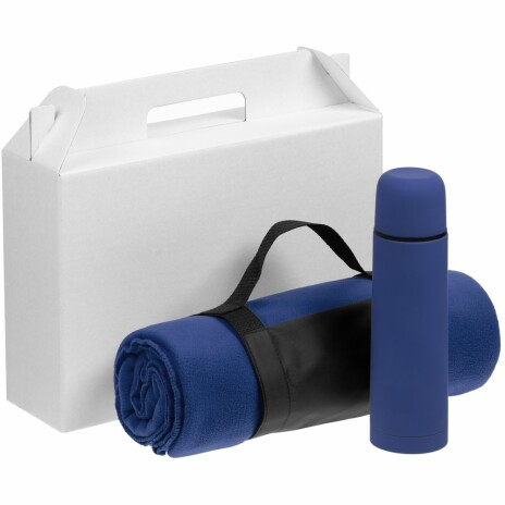 - Материал: плед - флис, плотность 180 г/м²; термос - нержавеющая сталь, 304 внутри, 201 снаружи, пластик, покрытие софт-тач; коробка - микрогофрокартон