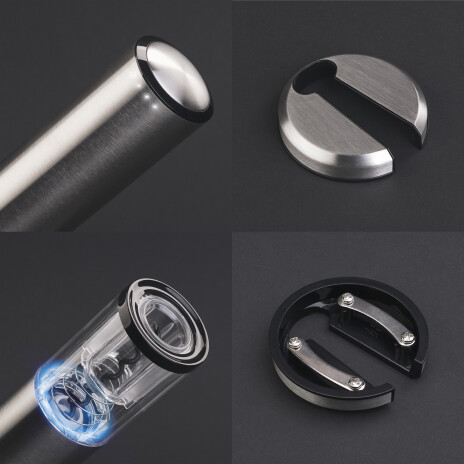 Штопор «Сомелье» простой в использовании — поместите его по центру пробки на горлышко бутылки, затем, с помощью легкого нажатия, извлеките пробку. Элегантный девайс имеет подсветку, что добавляет ещё больше антуража при открытии бутылки. Кроме этого, он не требует частой подзарядки — одного заряда хватает на открытие минимум 60 бутылок!