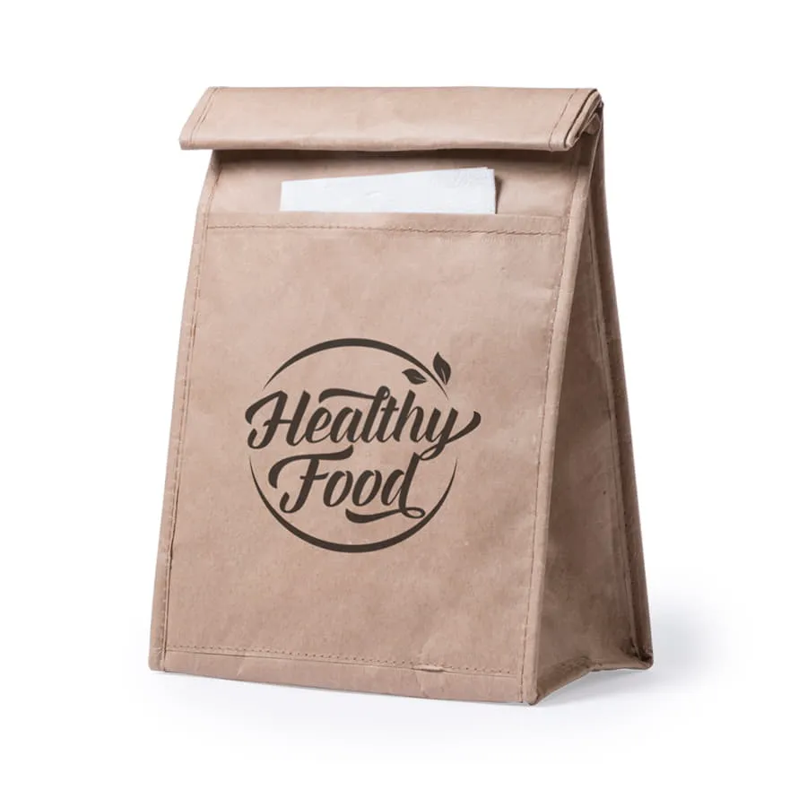 Термо-пакет выполнен из прочной ламинированной бумаги 85г м2 с алюминиевой подкладкой для сохранения температуры. Застежка велкро, удобный внешний карман. Объем 2,3 литра