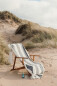 Хлопковое пляжное полотенце с кисточками и карманом для шезлонга. Наслаждайтесь вашим отдыхом, а полотенце будет надежно закреплено. Произведено в Индии из 100% органического хлопка. Плотность ткани 450 г/м². Сертифицировано GOTS (Глобальный стандарт органического текстиля).
