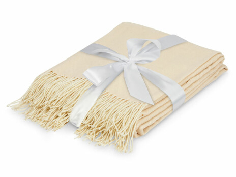 Большой размер этого мягкого плотного пледа позволяет использовать его как одеяло и как покрывало, украшающее интерьер. По бокам плед украшен бахромой. В комплекте идет упаковочная бежевая лента, на которой можно сделать нанесение.