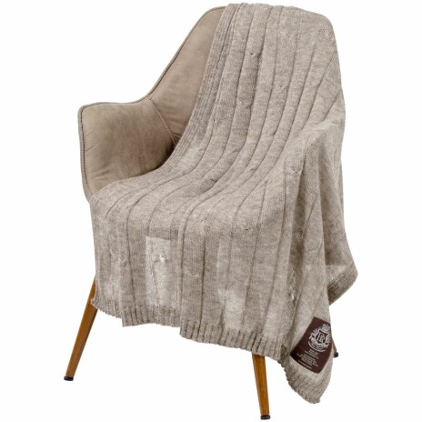 Плед выполнен из ультратонкой итальянской мохеровой пряжи с добавлением шерсти мериноса и нейлона.