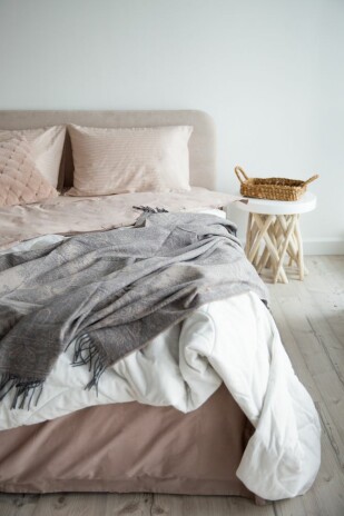 Благодаря кашемиру в составе плед очень приятный на ощупь и прекрасно согревает в любую погоду.