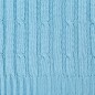 Модель: однотонный плед с фактурной вязкой, которая позволяет сделать его воздушным и объемным. Чередуя различные типы петель на гладком полотне, можно вывязать любую графику — логотип, текст, товарный знак.