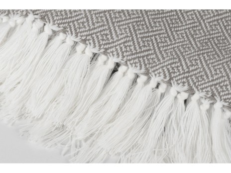 - Плед акриловый Tassel с белой бахромой, бежевый