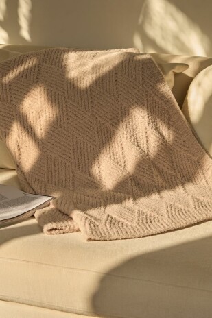 Изделие завораживает с первого взгляда: рельефный узор дарит пледу выразительность и премиальный вид. Плотная, увесистая структура материала мягко обволакивает и приятной тяжестью ощущается на теле.