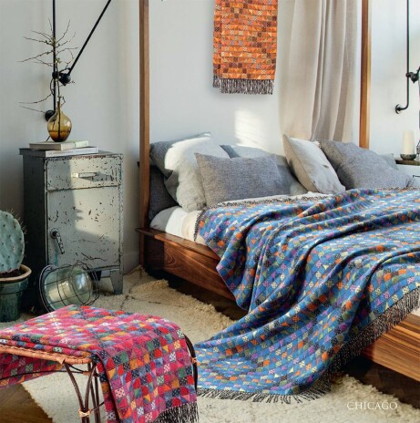 Плед Chicago с геометрическим узором, который имитирует лоскутное шитье и создает ностальгическое настроение, добавляя этнические нотки в окружающее пространство. Благодаря сдержанной цветовой гамме его достаточно легко вписать практически в любой интерьер. Выполнен из мягкого и нежного хлопка и украшен бахромой с двух сторон.