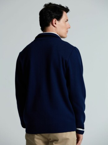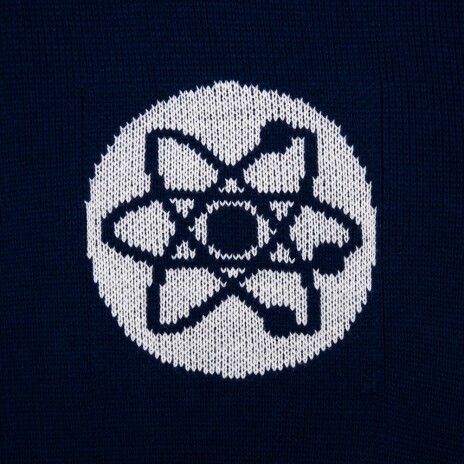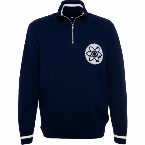Олимпийка с вывязанным логотипом и индивидуальным рисунком в фирменной цветовой гамме.