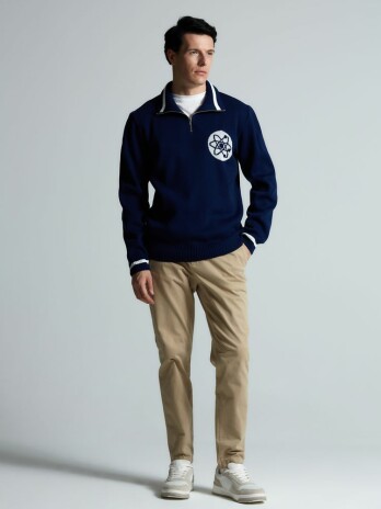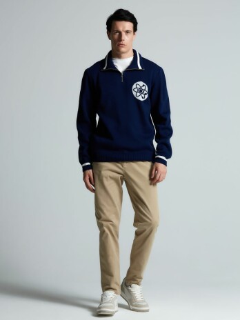 Модель: олимпийка унисекс жаккардовой вязки, ворот застегивается на молнию, гладкая поверхность.
