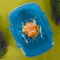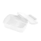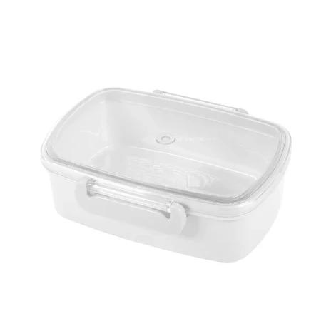 Ланч-бокс с прозрачной крышкой. Не герметичный. Подходит для использования в микровоолновой печи (со снятой крышкой), в посудомоечной машине, в морозильной камере. Корпус выполнен из PP-пластика. BPA-free (не содержит бисфенол А).
