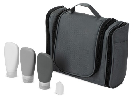 Набор "On air" состоит из двух предметов: Несессер для путешествий. Эргономичный и вместительный, имеет внутренние и внешние карманы и большое отделение внутри. Оснащён ручкой для переноски и крючком для подвешивания. Нейтральный лаконичный дизайн позволяет преподнести несессер как мужчине, так и женщине; Силиконовые ёмкости для косметических средств. Три флакончика по 90 мл каждый пригодятся для коротких поездок, а еще они вписываются в лимит большинства авиакомпаний по провозу жидкости в ручной клади. - силиконовые флакончики упакованы в полупрозрачную косметичку из EVA; - колпачок для зубной щётки в комплекте; - в несессере предусмотрены резинки и кармашки для мелких предметов, например, бритвенного станка.