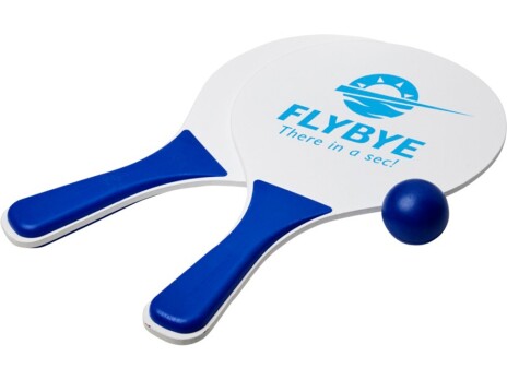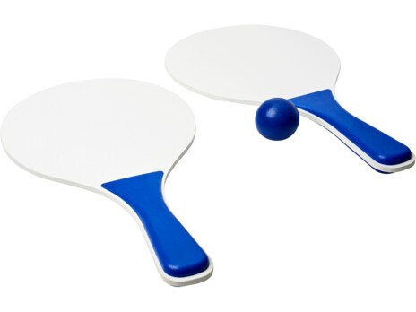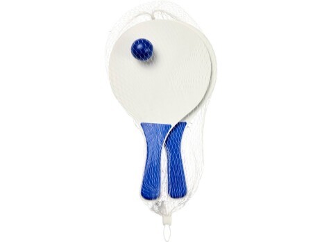 Набор для пляжных игр Bounce. С этим набором пляжных игр, предлагаемым в широкой цветовой гамме, всегда весело. Этот прочный набор пляжных игр изготовлен из дерева МДФ с цветной ручкой из полипропилена. Упаковано вместе с мягким шариком одного цвета в сетчатую упаковку, что позволяет провести веселый день на пляже. МДФ.