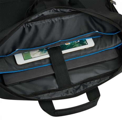 - Основное отделение для файлов А4 с отсеком для ноутбука 17'' и открытыми карманами