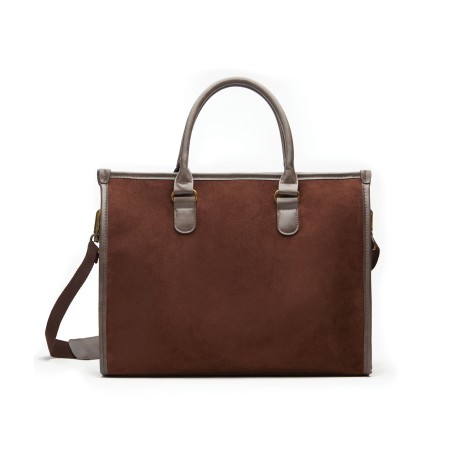 Сумка для ноутбука из коллекции Hunton идеально подойдет для офисного дресс-кода. Деловая и достаточно строгая, она отличается отделкой в ретро-стиле и мягким покрытием, имитирующим замшу. Уверенности в себе добавит незаметная, но важная деталь: качественная, красивая и приятная на ощупь подкладка, визитная карточка VINGA. Внутри сумки два отделения, одно из которых предназначено для ноутбука диагональю не больше 17’’. Однако стоит обратить внимание на толщину ноутбука: к примеру, тонкий MacBook без труда поместится в сумку. А габаритный и объемный MSI с диагональю 17'' оказался для нее слишком большим. Мягкая подкладка защитит технику от повреждений. Во второе отделение поместятся документы, ежедневник и необходимые мелочи. В комплект входит удобный плечевой ремень, который при необходимости можно снять.