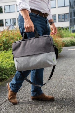 Ноутбук и другие необходимые аксессуары надежно упакованы в эту сумку для ноутбука. Эта двухцветная сумка для ноутбука изготовлена из RPET и отличается минималистичным дизайном. Подходит для 15,6-дюймового ноутбука. Во внутреннем кармане предусмотрена функция RFID для защиты от скимминга. Не содержит ПВХ.