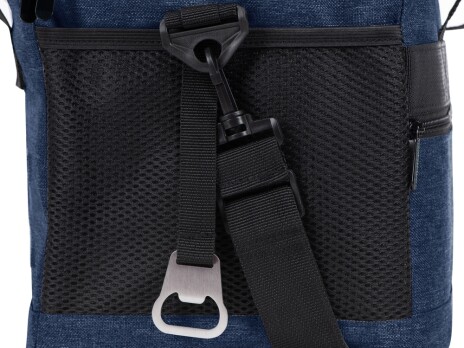 Вместительная сумка-холодильник со специальной конструкцией дна, предотвращающей протекание наружу жидкости от размораживания. Поверхность сумки всегда остается сухой. Основное отделение и карман спереди на молнии. Сбоку 2 сетчатых кармана. Съемный плечевой ремень регулируется по длине. Короткие ручки фиксируются вместе застежкой-липучкой. В комплекте открывалка для бутылок.