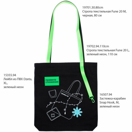 Базовый шопер разработан в рамках единой коллекции одежды и аксессуаров и легко комбинируется с ее элементами. Специально спроектированные лекала и технологии пошива открывают простор для любых вариантов кастомизации и нанесения изображений. На видимой части изделий нет лейблов с айдентикой бренда, а название бренда с уходника легко удалить.
