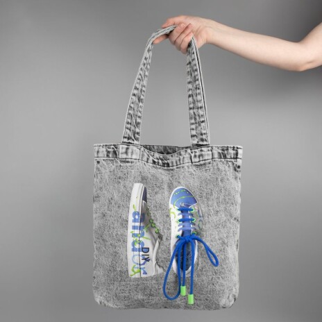 Базовый шопер из джинсовой ткани разработан в рамках единой коллекции и легко собирается в комплекты. Специально спроектированные лекала и технологии пошива открывают простор для любых вариантов кастомизации и нанесения изображений. На видимой части изделий нет лейблов с айдентикой бренда, а название бренда с уходника легко удалить.