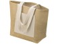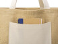 Сумка для покупок из ламинированного джута с большим хлопковым карманом спереди и широкими парусиновыми ручками из натурального хлопка. Благодаря расширенному дну сумка обладает большой вместимостью.
