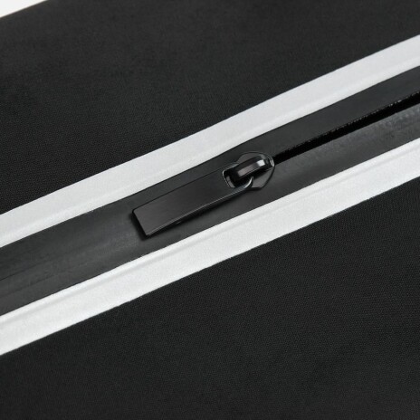 Регулируемый ремень из широкой эластичной резинки с плоским фастексом плотно облегает тело и удерживает сумку во время тренировок. Водоотталкивающая пропитка ткани защитит от влаги и грязи, а светоотражающие детали помогут оставаться заметными во время тренировок в сумерках и темноте.