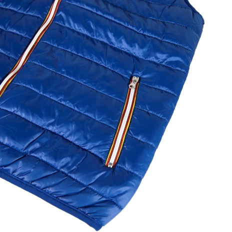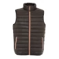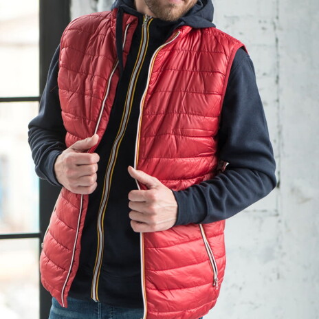 Основная ткань: цвет, близкий к Pantone 432 C, подкладка: цвет, близкий к Pantone 430 C Легкий жилет из нейлона. Небольшой воротник-стойка. Контрастная облегленная пластиковая молния со съемным пуллером. Два передних кармана на молнии. Один внутренний карман на липучке. Cтягивающая эластичная резинка по низу изделия и в рукавах.