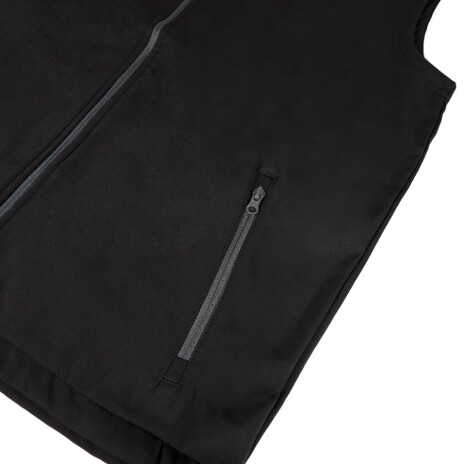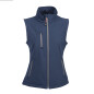 Основная ткань: цвет, близкий к Pantone 289 С, подкладка: цвет, близкий к Pantone 2965 C Двухслойная ткань softshell. Водонепроницаемый и дышащий женский жилет. Приталенная модель. Небольшой воротник-стойка. Обратная контрастная пластиковая молния со съемным пуллером. Один нагрудный и два боковых кармана с обратной молнией. Утягивающий шнурок по низу жилета.