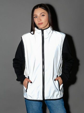 Можно носить как светоотражающей, так и флисовой стороной наружу.