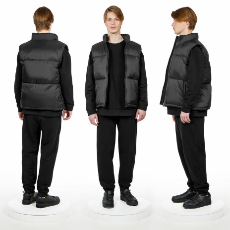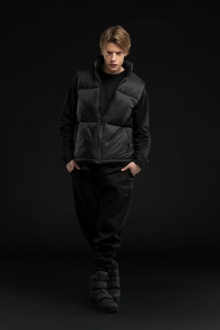 Двусторонний утепленный жилет V2 — это сразу два стильных образа в одном изделии. С одной стороны он стеганый и глянцевый, а с другой — матовый, лаконичный и уже без прострочки. Объемная и легкая модель оверсайз позволяет создать непринужденный и комфортный образ и в городе, и в путешествии.