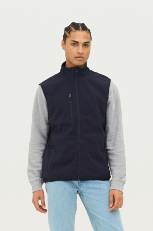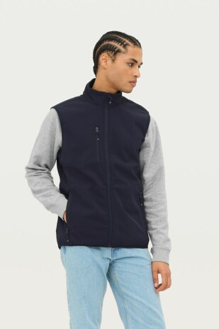 Мужской водонепроницаемый и ветрозащитный жилет на молнии из трехслойного софтшелла с флисовой изнанкой. Выполнен из переработанного полиэстера.