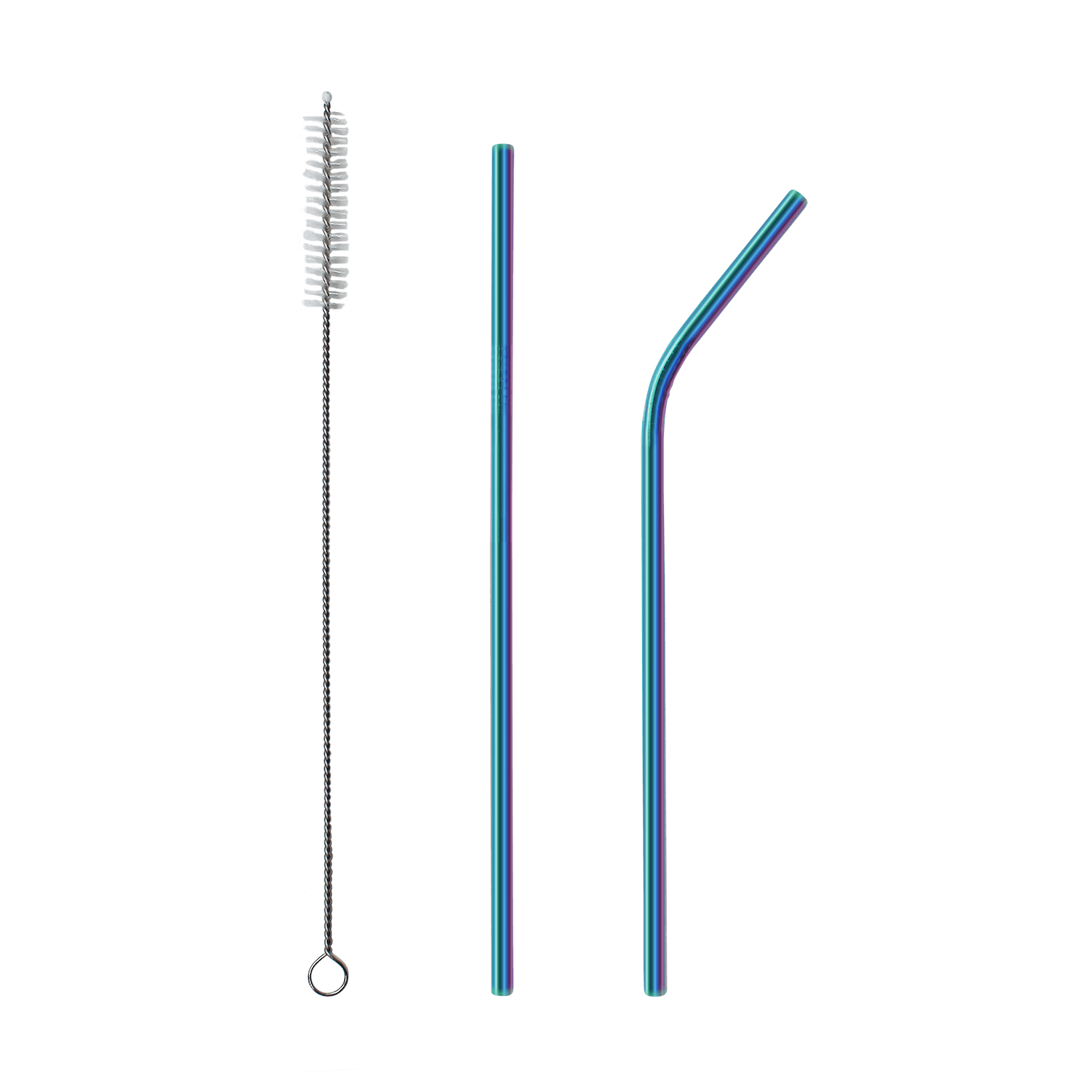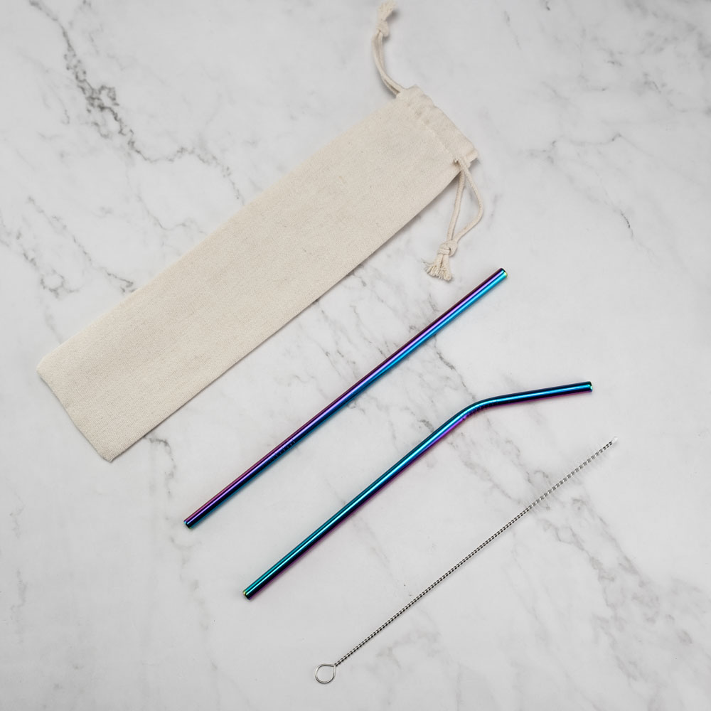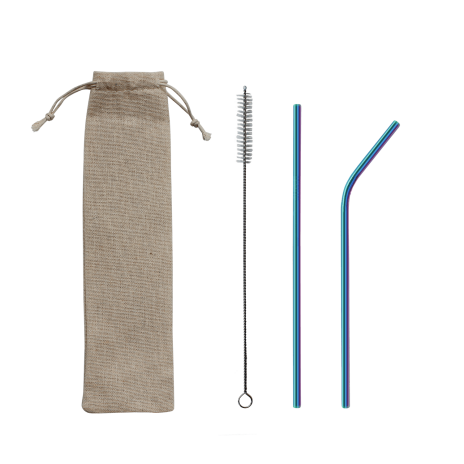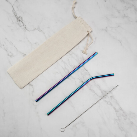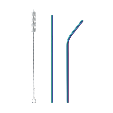 Трубочки изготовлены из пищевой стали. В набор входит: прямая и изогнутая трубочки, а также ершик для удобной чистки.