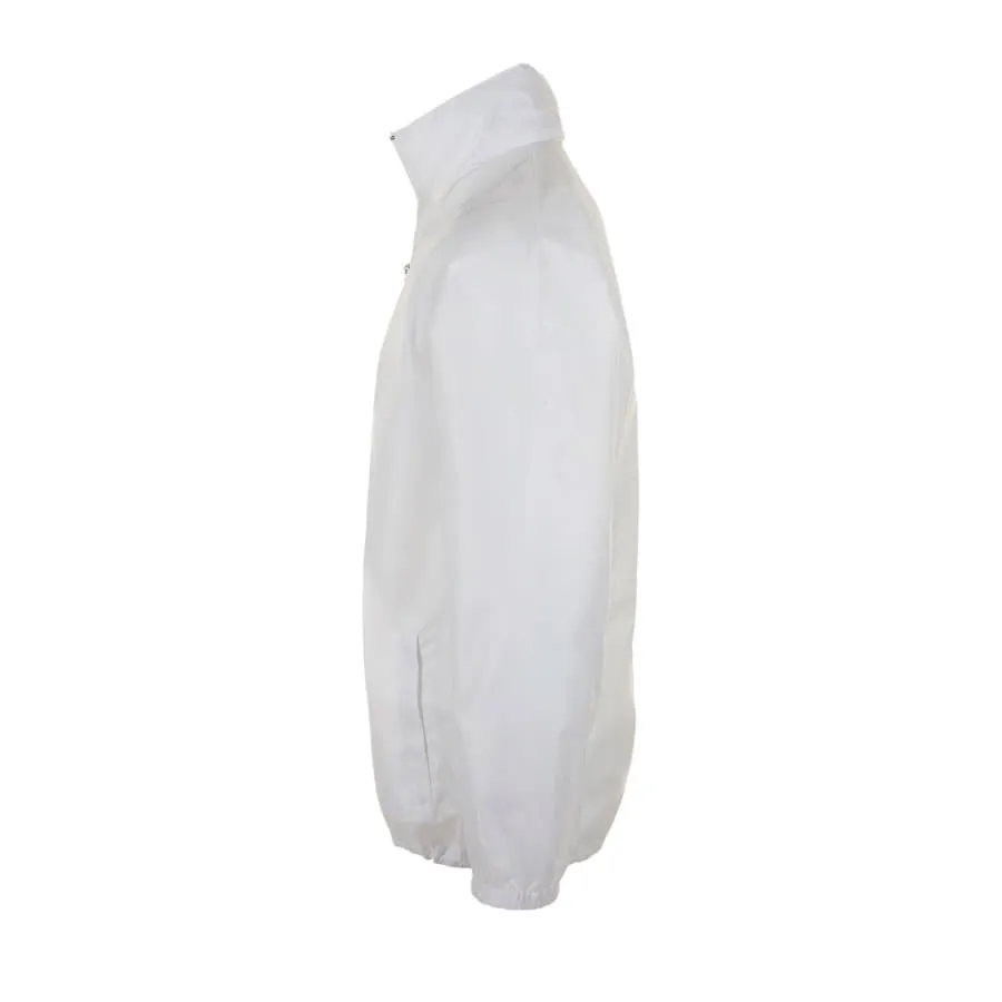 Легкая ветровка унисекс с облегченной пластиковой молнией. Воротник с убирающимся капюшоном. Эластичные манжеты на резинке.