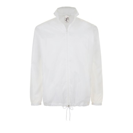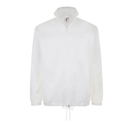 Легкая ветровка унисекс с облегченной пластиковой молнией. Воротник с убирающимся капюшоном. Эластичные манжеты на резинке.