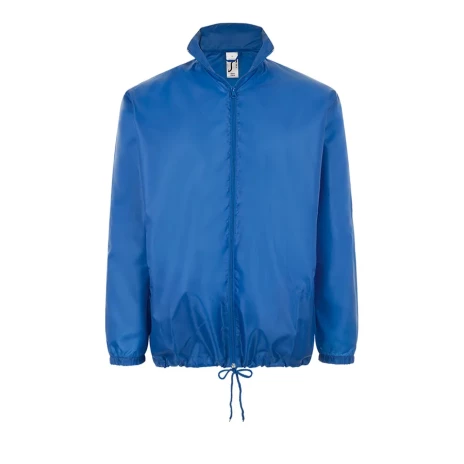 Легкая ветровка унисекс с облегченной пластиковой молнией. Воротник с убирающимся капюшоном. Эластичные манжеты на резинке. Цвет близкий к PANTONE 293C 7686C