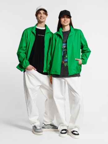 Тонкая гладкая ткань дюспо с притягательным матовым блеском почти бесшумна в использовании и пригодна для большого количества цветов печати. Качественный пошив ветровки добавляет ей презентабельности и гарантирует долгое использование, а яркий цвет привлекает внимание и не выгорает со временем.