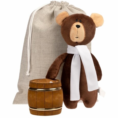 - Материал: игрушка - велюр, полиэстер; бочонок - липа; мешок - лен