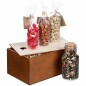 - Материал: чай - стекло, пробка; ящик, наполнитель - дерево; арахис, вишня, миндаль - полиэтилен