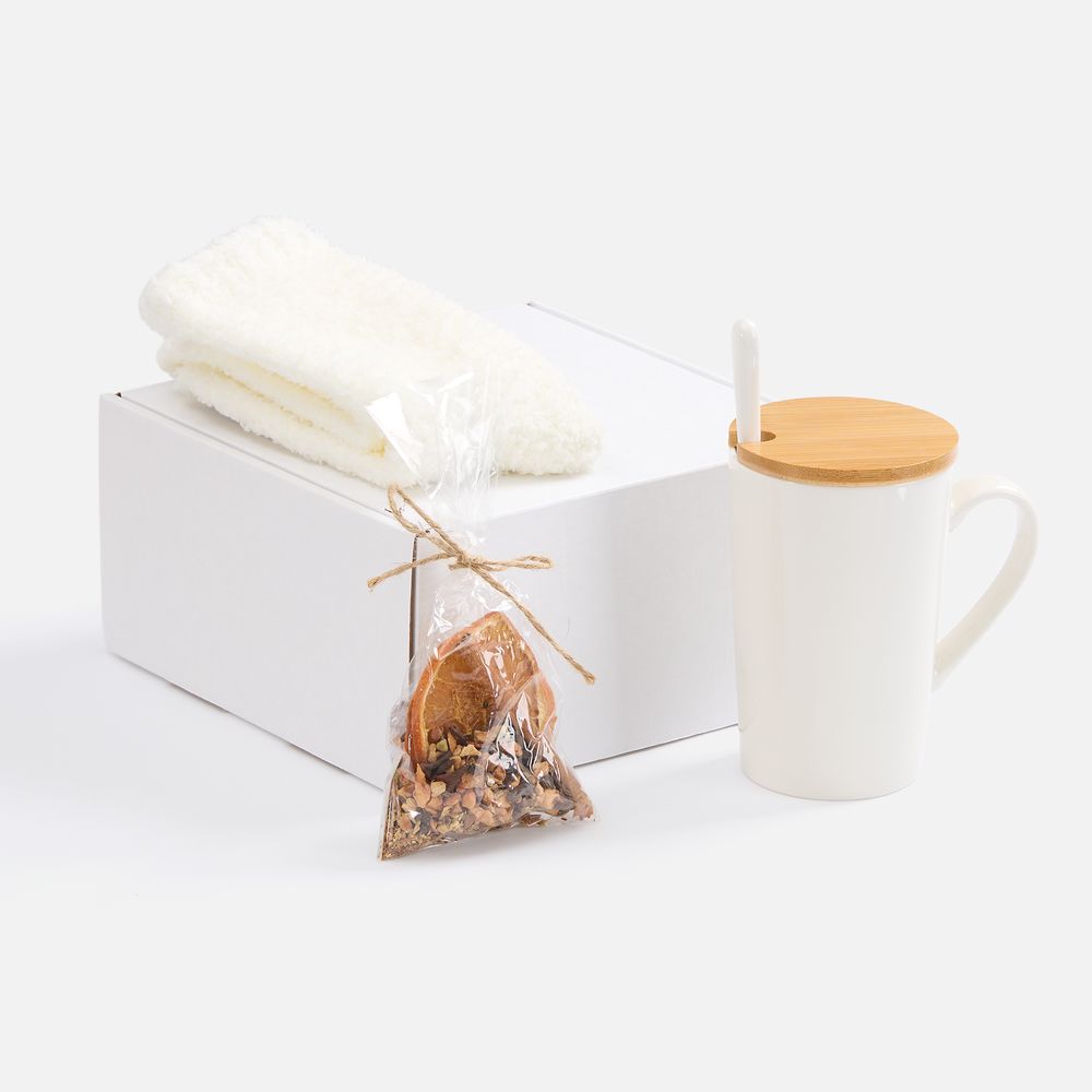 - Материал: кружка - фарфор, крышка - бамбук; ложка - нержавеющая сталь; носки - полиэстер 100%; коробка - микрогофрокартон, Т-23Е