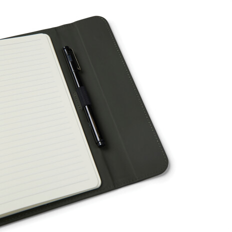 Стильный блокнот из коллекции Baltimore станет хорошим подарком для коллег, клиентов и партнеров. Его обложка изготовлена из переработанного полиуретана и оснащена магнитной застежкой, а также петлей для ручки. Благодаря покрытию soft-touch блокнот очень приятен на ощупь. Внутри 80 линованных листов (160 страниц) из переработанной бумаги плотностью 70 г/м². Такая плотность подходит для записей или создания скетчей. Внутреннюю часть можно легко заменить, когда все листы будут исписаны. Содержание вторичных материалов: 72% от общего веса изделия. Сертифицировано GRS. Эта сертификация полностью контролирует путь поставок переработанных материалов и гарантирует их наличие в изделии.