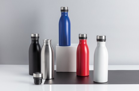 Эта удобная и легкая бутылка выполнена из стали марки 18/8, которая содержит 18% хрома и 8% никеля. В составе такой стали отсутствуют токсичные вещества. Сталь не выделяет запахов и не впитывает их. Бутылка полностью герметична и идеально подойдет для использования в повседневной жизни. Только для холодной воды. Объем: 500 мл.
