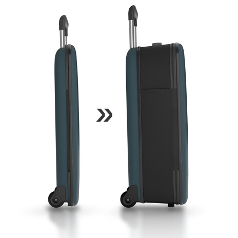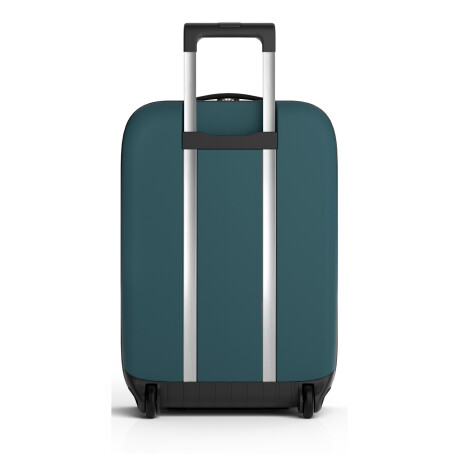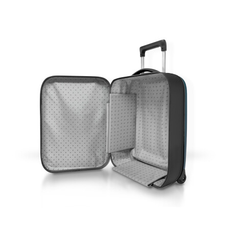 Складной легкий чемодан Rollink Vega II сине-зеленого цвета Deep Lagoon. Размер 55х40х20 см. В сложенном виде толщина составляет 5 см, с колёсами 8,5 см. Объем 40 л. Вес 2,4 кг. Жесткие стенки сделаны из поликарбоната повышенной ударопрочности. Бока мягкие, из темно-серого плотного полиэстера с высокой водоотталкивающей способностью. Чемодан уверенно стоит вертикально даже в сложенном состоянии. Внутри три откидывающихся жестких клапана на дне и боках чемодана, крепятся липучками и сохраняют форму чемодана в собранном виде. Эластичная Х-образная стяжка для фиксации предметов внутри чемодана. Боковой easy access карман 12х18,5 см на липучке для документов и телефона. Удлиненная надежная выдвижная телескопическая ручка из алюминия с несколькими уровнями фиксации высоты ручки (от пола 88/96/104 см) для людей разного роста и удобная мягкая ручка сверху чемодана, чтобы было удобно нести его в руках. 2 колеса со специальным покрытием и подшипниками для более плавного и бесшумного передвижения. Высококачественная молния черного цвета. В комплект входит эластичная стяжка для фиксации чемодана в сложенном состоянии. Технические характеристики: Колеса рассчитаны на 32 км Чемодан не разбивается при падении с высоты 90 см Стенки из поликарбоната выдерживают удар 32 кг Телескопическая алюминиевая ручка рассчитана на 300 выдвижений Мягкая ручка рассчитана на 500 поднятий Молния рассчитана на 5000 открываний