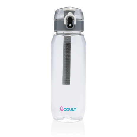 Позаботьтесь о природе вместе с герметичной бутылкой для воды Yide. Одноразовые бутылки и стаканчики больше не нужны — эта бутылка прослужит долгое время. Она изготовлена из переработанных пластиковых бутылок и не содержит BPA. Прочная и легкая, она вмещает до 800 миллилитров жидкости. Наливать в нее стоит только холодные напитки. Обратите внимание на крышку: она легко открывается нажатием на кнопку и оснащена фиксатором, который не даст напитку пролиться. Благодаря широкой петле бутылку можно подвесить к рюкзаку, сумке или носить на запястье, освободив руки. Все переработанные материалы имеют сертификат RCS, который гарантирует полный контроль цепочки поставок переработанных материалов.